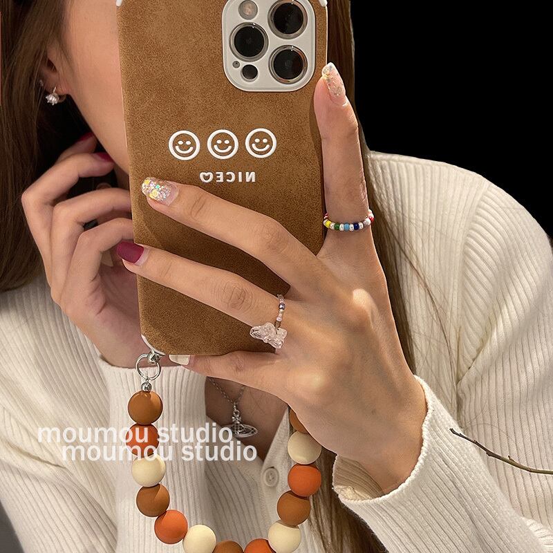 韓国風カラービーズスマイリーフェイス12アップル11promax携帯電話ケースiphonexメス8pソフトxs / xr レッド 韓国ファッション かわいいA MOMO_A88723054314