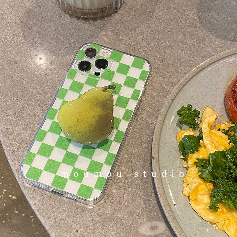 シンプルなグリーンのチェス梨に適した携帯電話ケース12promaxシリコンスリーブ8pブラケット透明 かわいいA MOMO_A45675980969