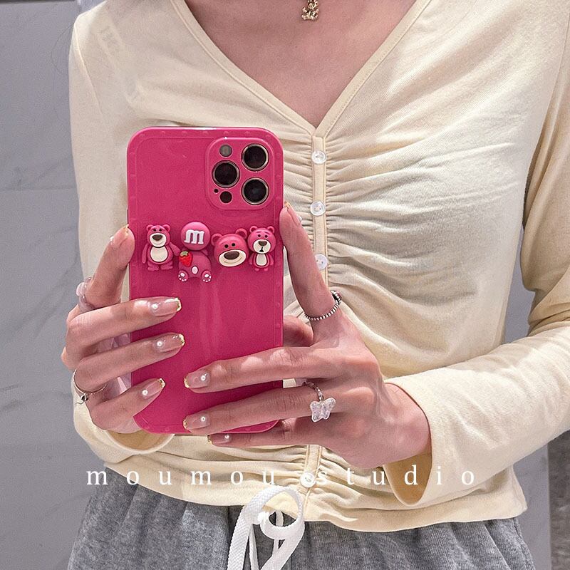 漫画の立体的なピンクのクマが適しています携帯電話ケース12promaxシリコンスリーブ7p / 8p女性 かわいいA MOMO_A43738108411