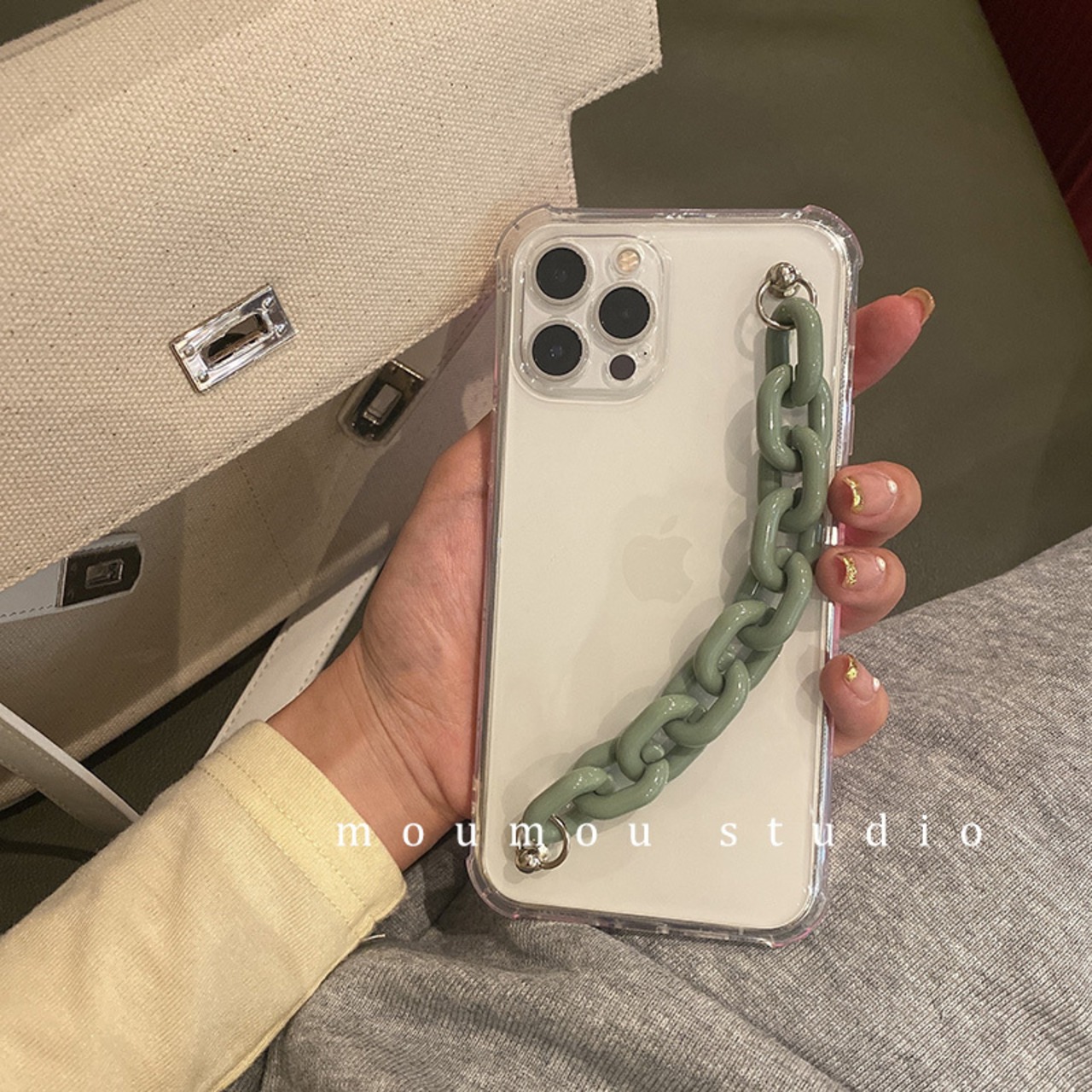 グレーグリーンチェーン スリーブ iphoneケース かわいいA MOMO_A36770177022