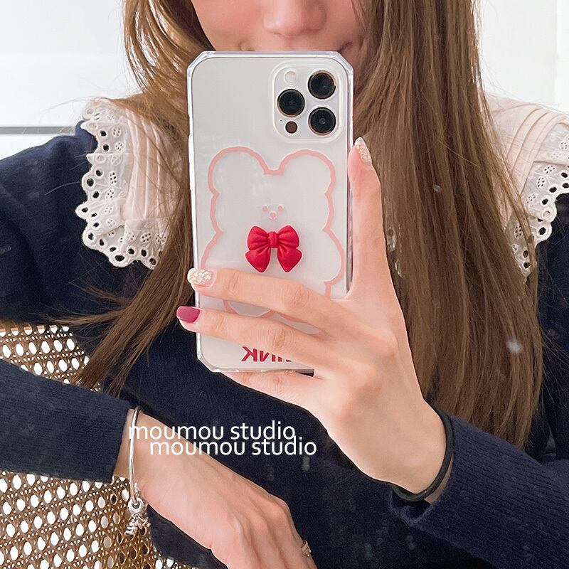三次元ボウタイベアに適した12アップル11promax携帯電話シェルiphonexメス8pソフトxs / xrブラケット リボン かわいいA MOMO_A34243784589