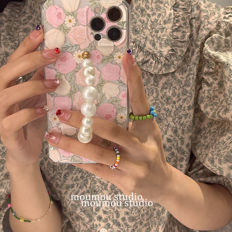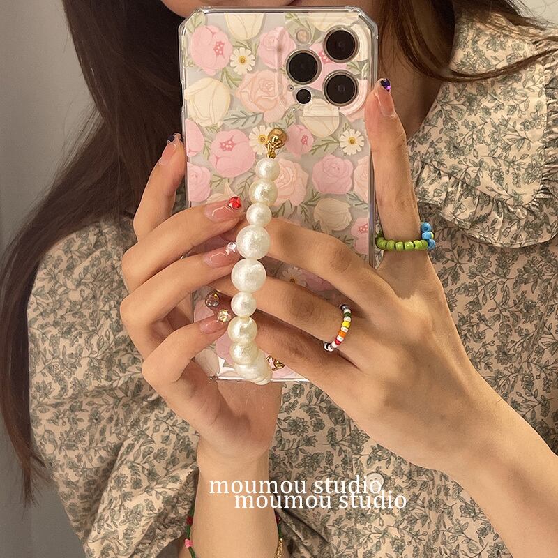 ピンクの小さなフローラルパールチェーンに適した携帯電話ケース12promaxセット7p / 8p 花柄 真珠 かわいいA MOMO_A12848444104