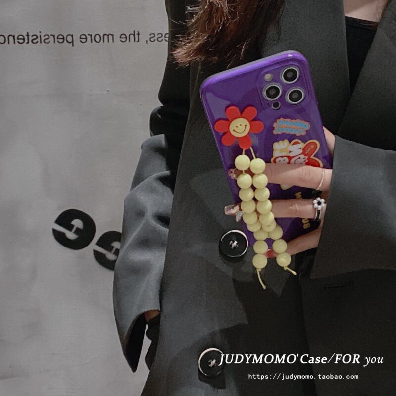 insニッチビーズチェーンパープル適切なiphone12アップル11promax携帯電話シェルxr / 78p落下防止 かわいい MOMO26445459179