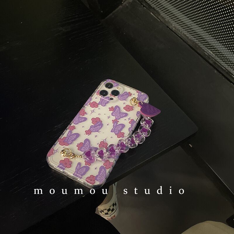 と韓国の紫色の蝶に適した携帯電話ケース12promaxシリコンケース7p / 8p パープル 韓国ファッション かわいいA MOMO_A9272309789