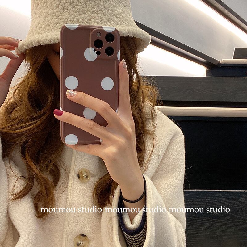 レトロなブラウンウェーブドットに適した携帯電話ケース12promaxシリコンスリーブ7p / 8p かわいいA MOMO_A31311972767