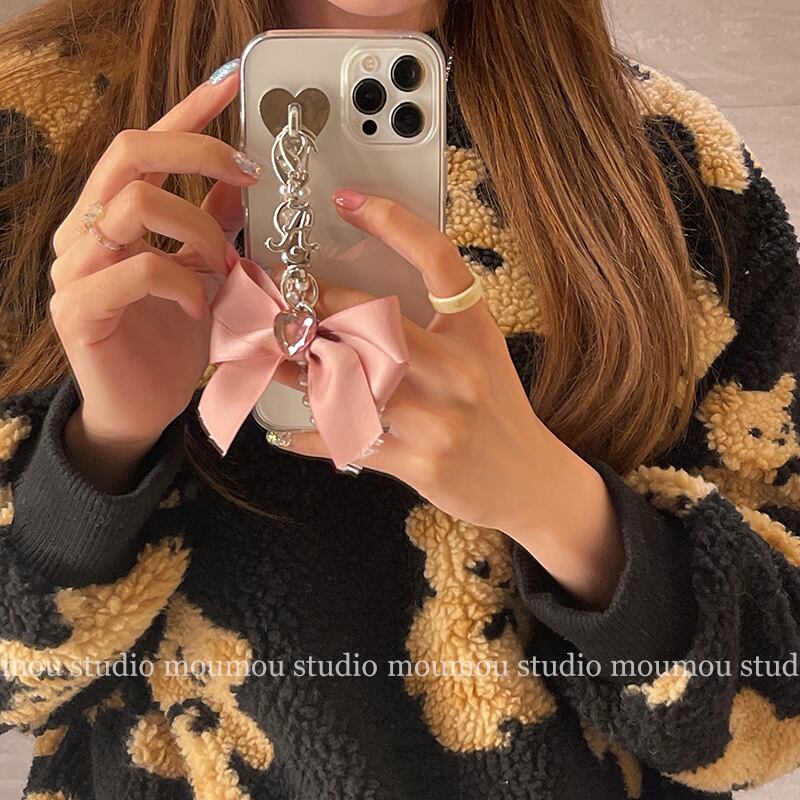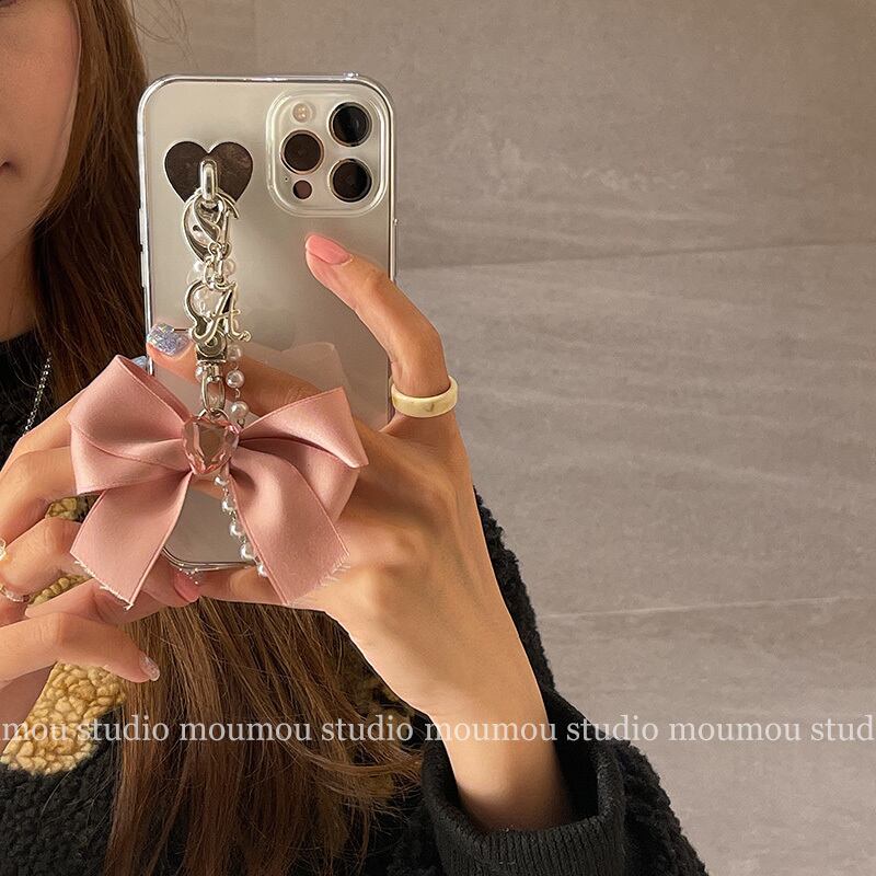 ガールハートボウノットチェーンプルーフ該当アップル12 / 11proマックス携帯電話ケースiphonex8p リボン かわいいA MOMO_A74008311655
