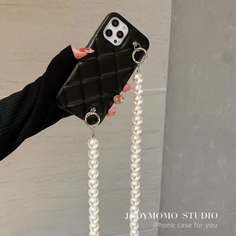 ラージパールワンショルダーメッセンジャーチェーンiPhone12Apple 11promaxデータベース菱形レザーxr8 真珠 かわいい MOMO55609032254