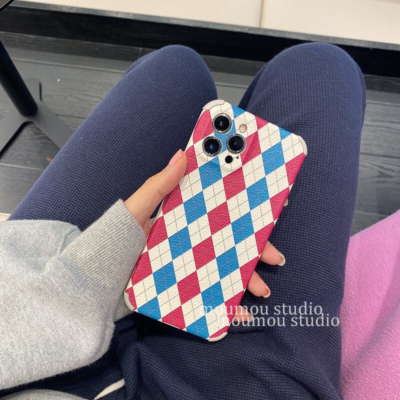 ブリティッシュスタイルのダイヤモンドパターン透明な適切な携帯電話ケース12promaxシリコンスリーブ7p / 8p かわいいA MOMO_A74411692287