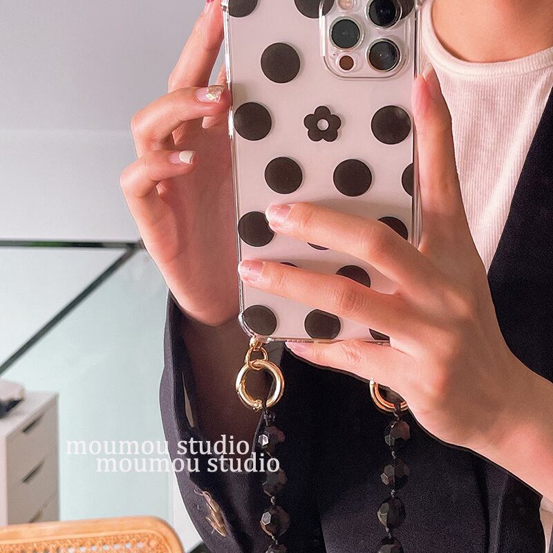 韓流ドットフラワーに適した12アップル11promax携帯電話ケースiphonexメス8pxs / xrビーズチェーン フラワーデザイン 韓国ファッション かわいいA MOMO_A92835740999