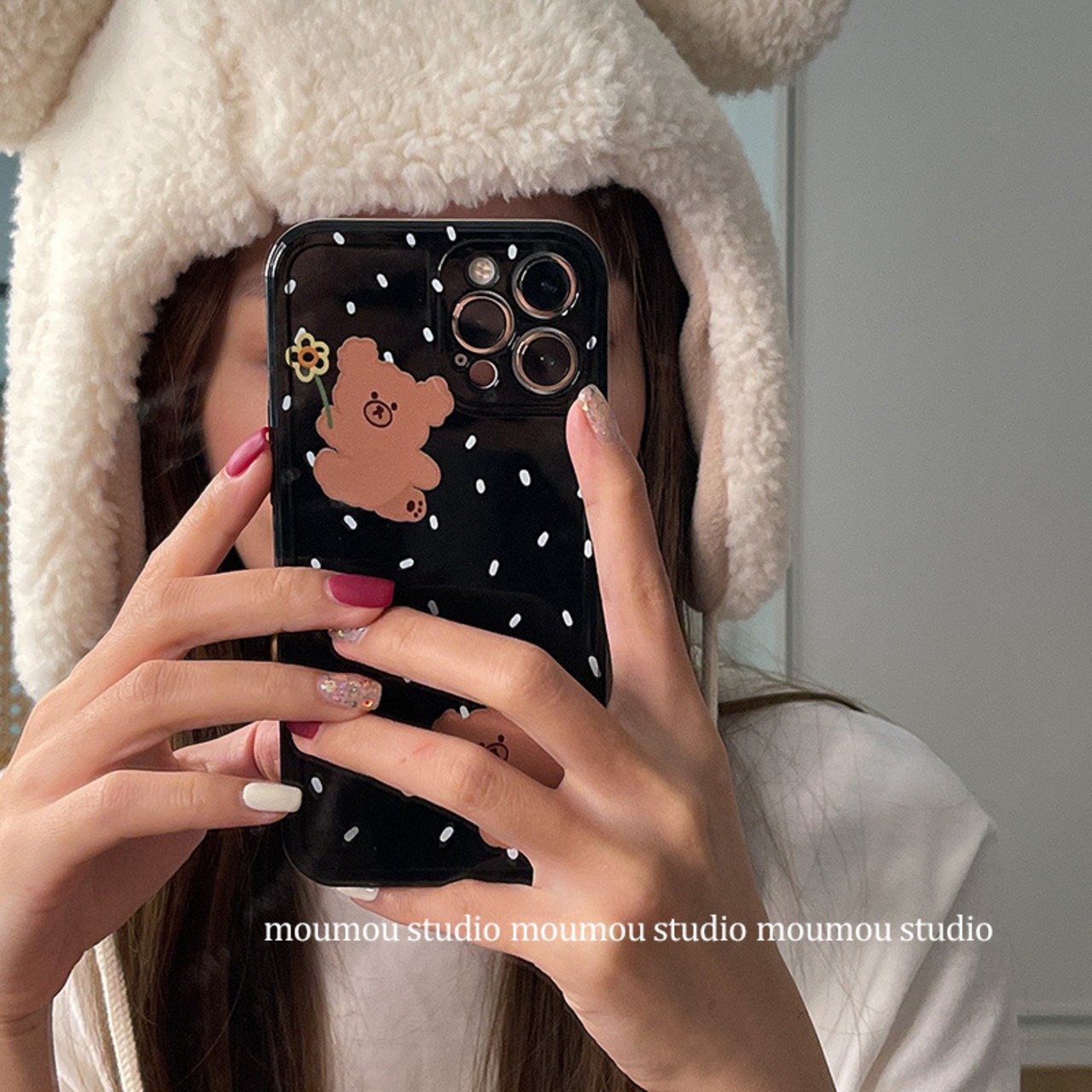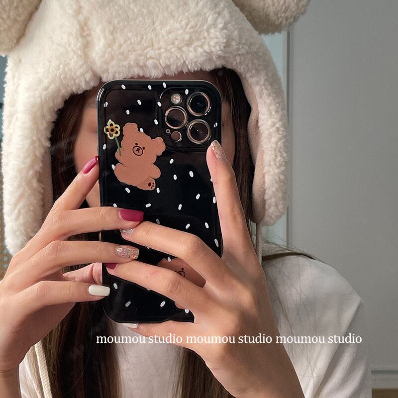 フラワーベアかわいい漫画アップル11iphone12携帯電話ケース12proマックスシリコンスリーブ7p / 8pを取る 大人ガーリー スウィート キュート カジュアル フラワーデザイン かわいいA MOMO_A77315022686