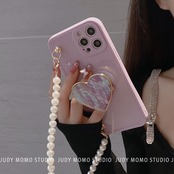 ガーリーパープルシェルパターンブラケットパールチェーンに適した12promaxアップル11携帯電話ケースiPhonex / xr soft 真珠 かわいい MOMO45702758941