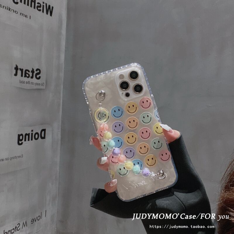 小さなビーズチェーンカラースマイリーフェイスに適したiphone12proマックスアップル11アンチドロップ携帯電話ケースxr / 8p / x かわいい MOMO43532073493