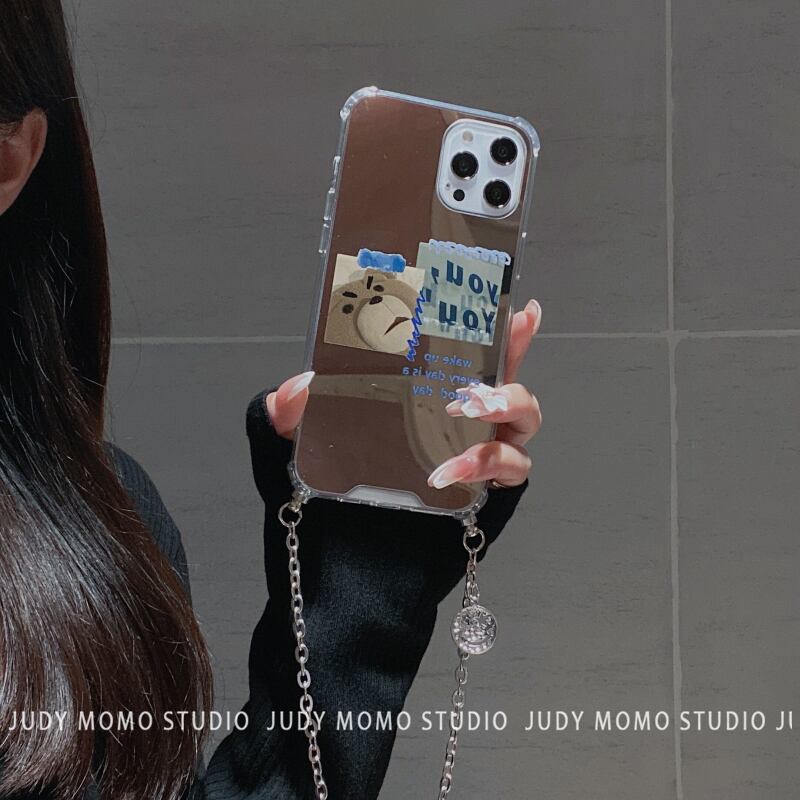 漫画のミラーベア適切な12promax携帯電話シェルシンプルな細いチェーンiphone11アップルxr / xs / 8 かわいい MOMO77771724772