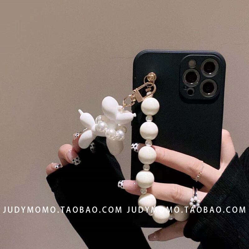 かわいいパールホワイトバルーンドッグチェーン携帯電話ケースiPhone11アップルXSマックスアンチドロップ12プロソフト7 大人ガーリー スウィート キュート カジュアル 真珠 iphoneケース かわいい MOMO11265635825