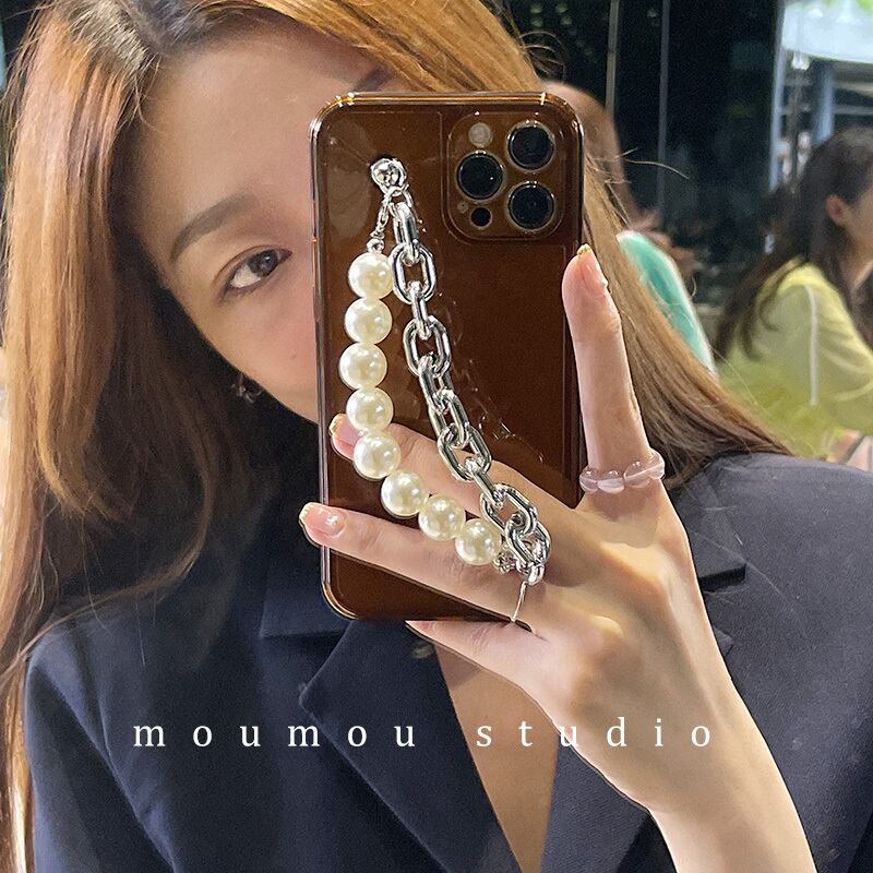 シンプルなパールチェーンに適した携帯電話ケース12promaxシリコンスリーブ7p / 8pブラウン 真珠 かわいいA MOMO_A76514320363