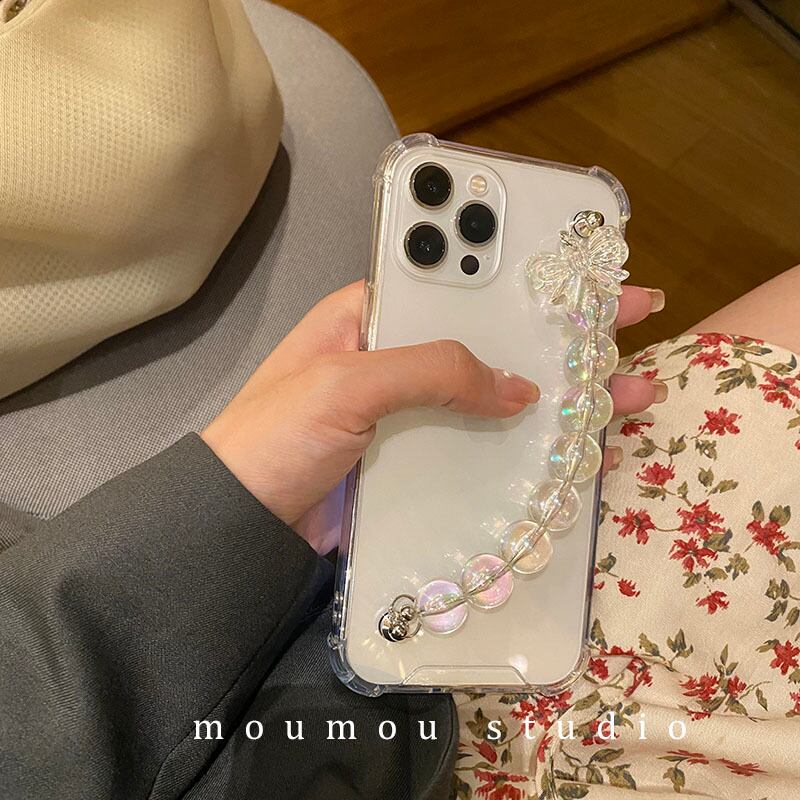 ボウノットビーズチェーンに適した12アップル11promax携帯電話ケースiphonexメス8pソフトxs / xr透明 かわいいA MOMO_A49688175678