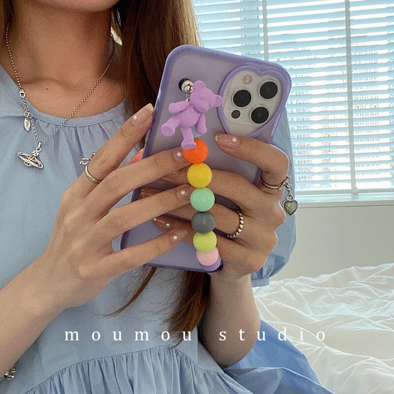 と韓国のカラービーズベアチェーンラブフレームアップル11iphone12携帯電話ケース12promaxシリコンスリーブ8p かわいいA MOMO_A39305381341