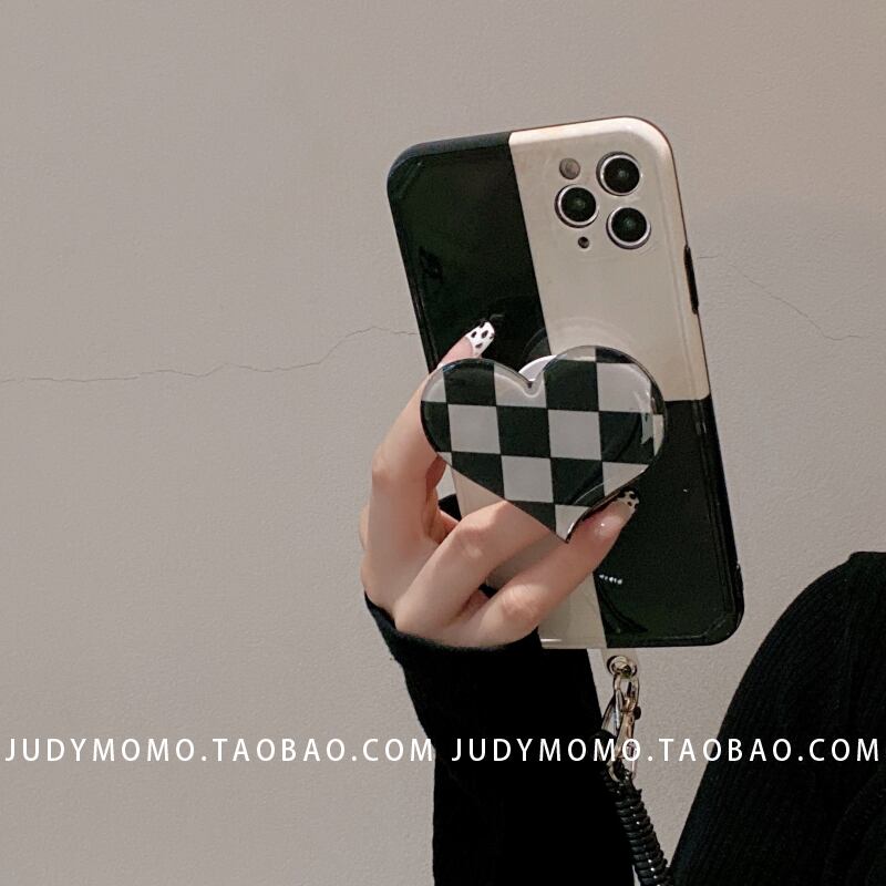 insシンプルな黒と白のチェッカーボードブラケットに適したpromax携帯電話シェルxrストラップ付きxs ホワイト ブラック NEW iphoneケース かわいい MOMO69121845402