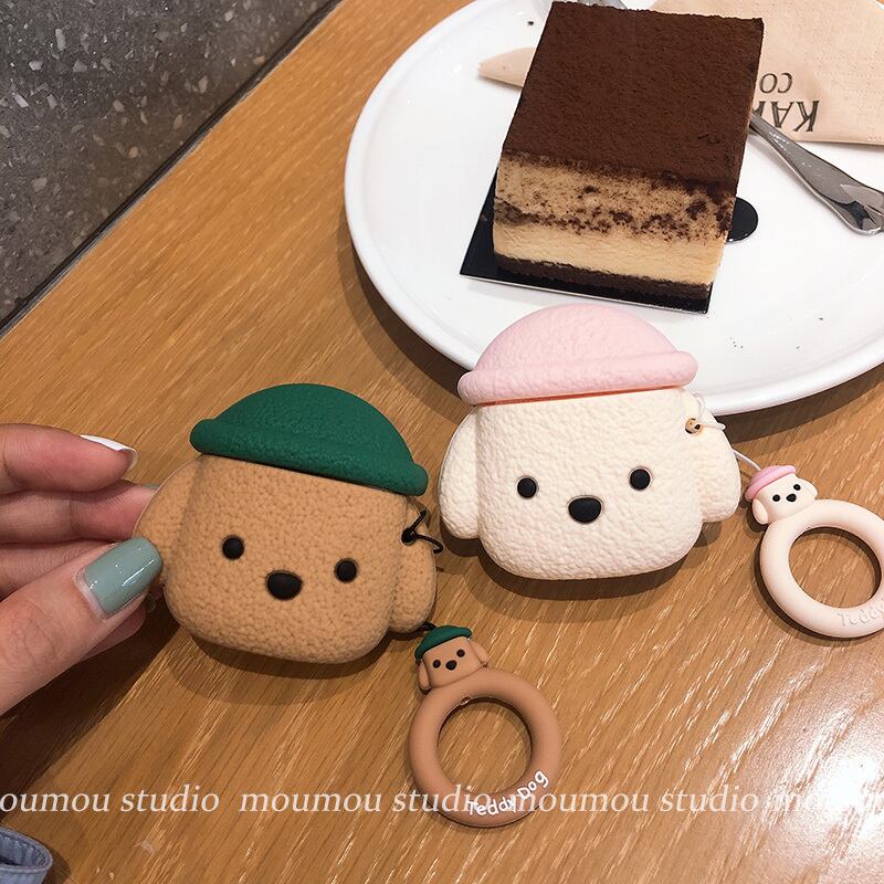 色:白い子犬ピンクの帽子,緑の帽子と茶色の子犬