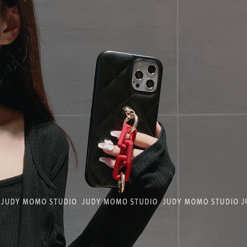 軽くて贅沢なシンプルなブラックレザーケースApple12promax携帯電話ケースレッドチェーンiPhone11 / xr / 7 / x iphoneケース かわいい MOMO15130619478