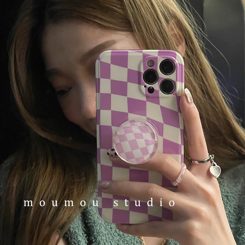 韓国の3次元紫色グリッドに適した携帯電話ケース12promaxシリコンスリーブ8pブラケット パープル かわいいA MOMO_A29573172547