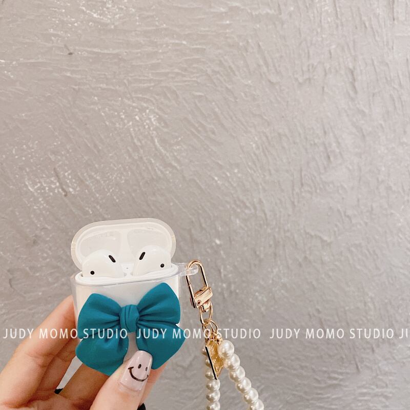 気質ブルーボウに適したエアポッドアップルBluetoothヘッドセット保護カバー透明ソフトシェル2世代落下防止 リボン かわいい MOMO59300618775