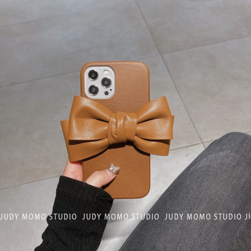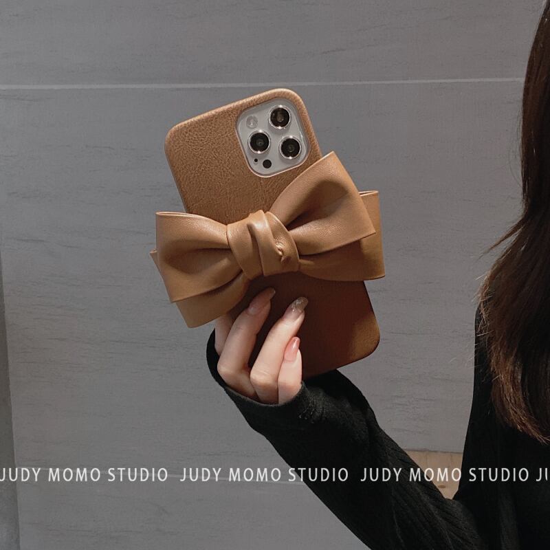 レザーブラウンビッグボウに適したpro携帯電話ケース11promax 8p / xs7 リボン iphoneケース かわいい MOMO89145166727