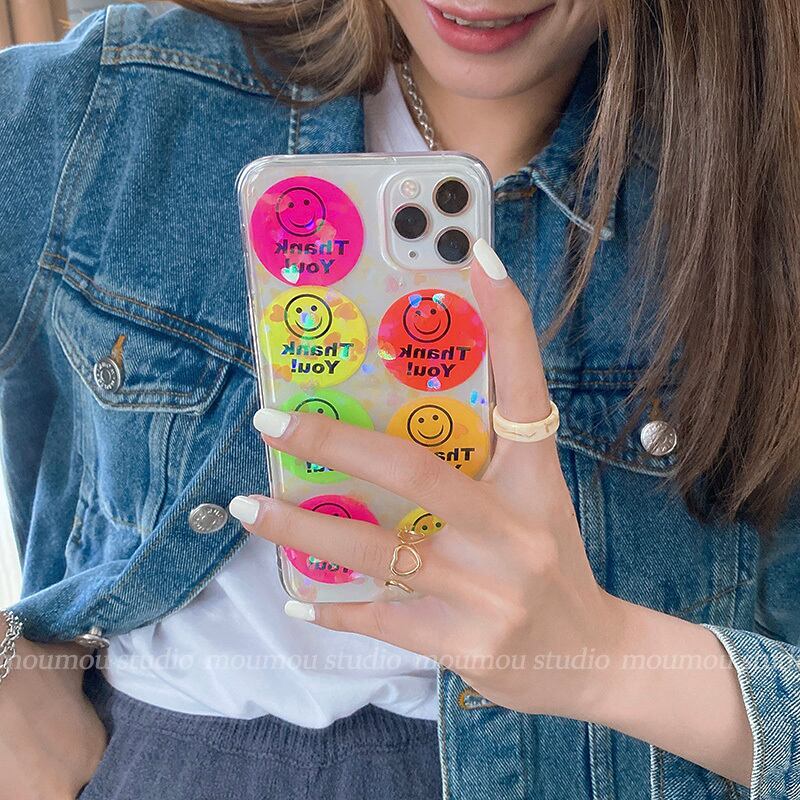 ポジティブエナジースマイリーフェイスグルーグリッターに適した携帯電話ケースiphone11 / plus / xs / xr / 12 Pro Max soft かわいいA MOMO_A6677728307