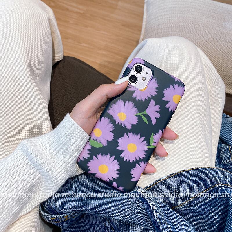 韓国ファッションスタイル フラワーデザイン パープル iphoneケース かわいいA MOMO_A21040332506