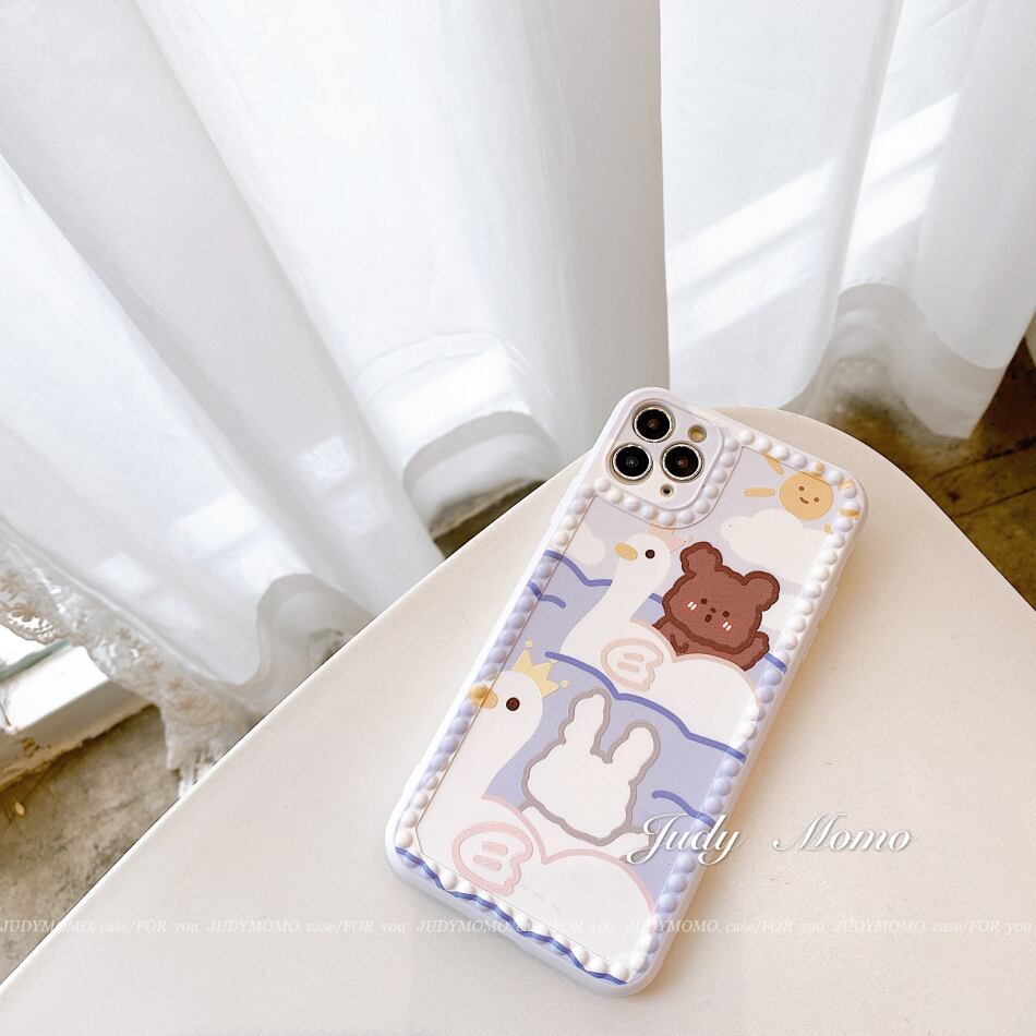 ins style @楽しい漫画のクマとアヒルのiPhonex携帯電話ケース11promax Apple 7 / 8pセット NEW iphoneケース かわいい MOMO20293687527