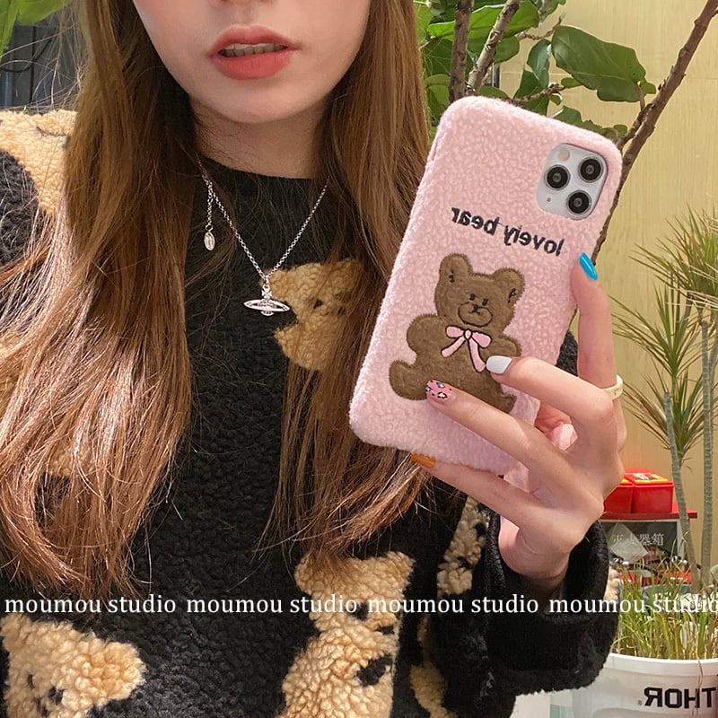 秋冬ぬいぐるみピンククマ漫画表現に適したアップル12 / 11proマックス携帯電話ケースiphonex8pソフト オータム 秋物 ウィンター 冬物 かわいいA MOMO_A10313438769