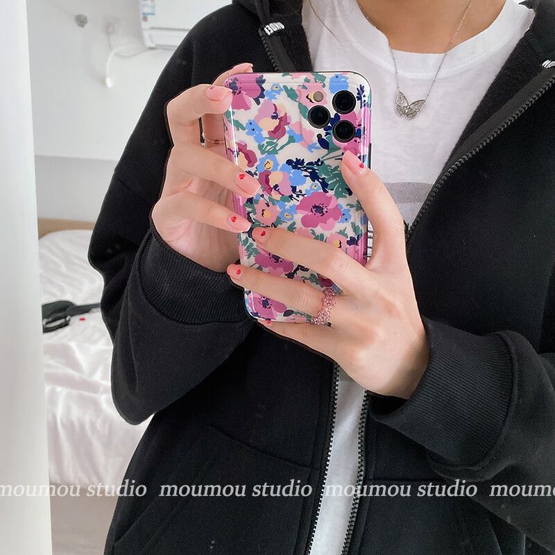 メンズFlowerデザイン レディース フラワーデザイン パープル iphoneケース かわいいA MOMO_A57557242938