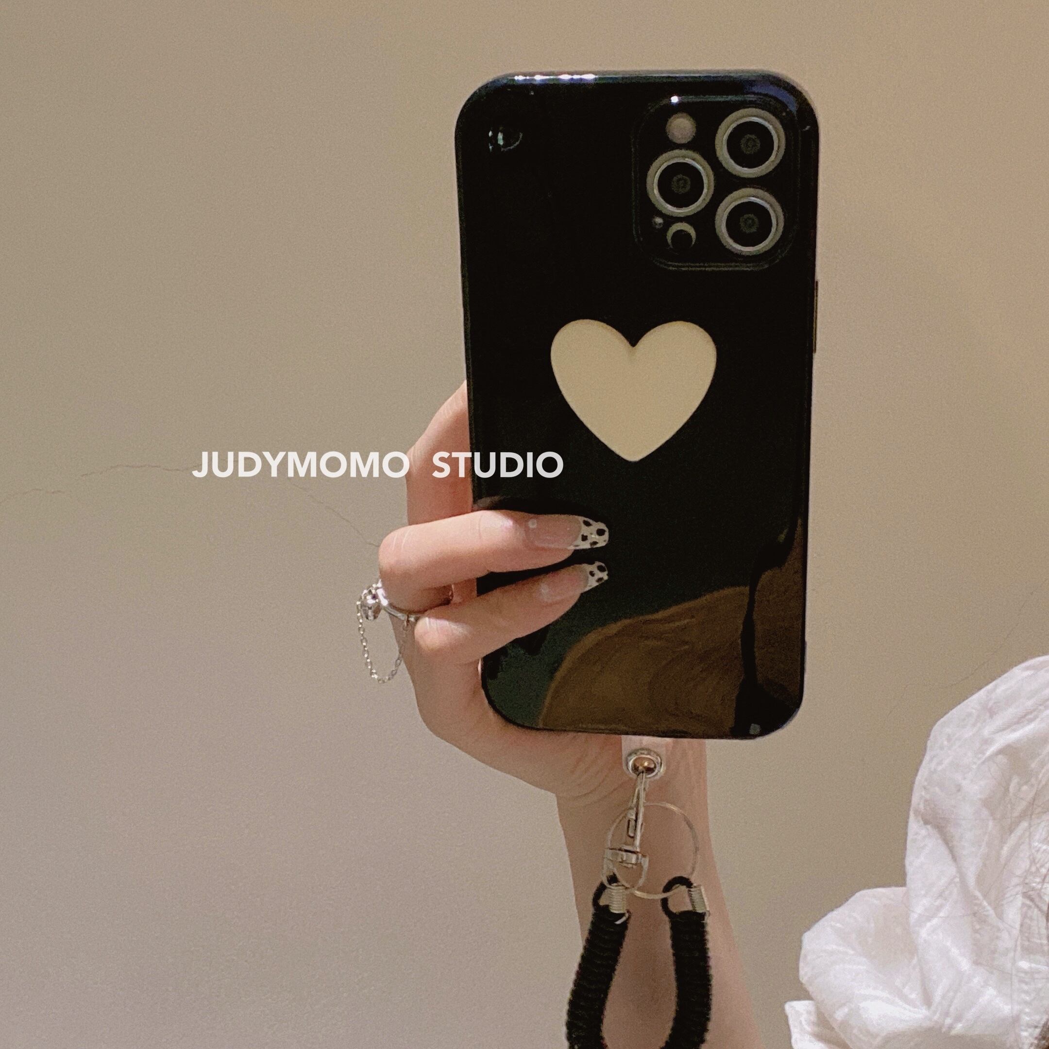 シンプルな愛の黒と白のベルトストラップiPhonexsApple 12promaxシリコン7pソフト11 / xr ホワイト ブラック ハーネス iphoneケース かわいい MOMO17986959583