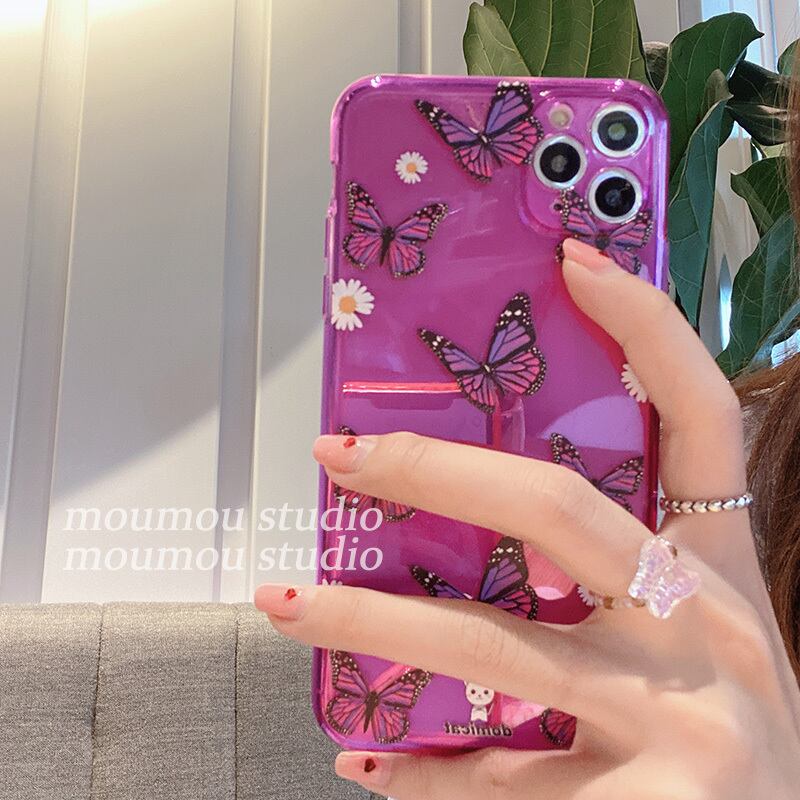Butterflyデザイン レディース パープル iphoneケース かわいいA MOMO_A26086648052