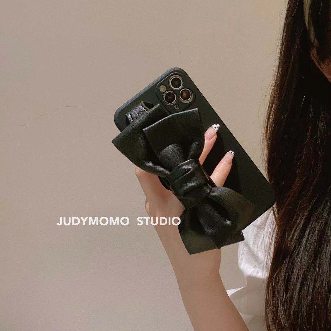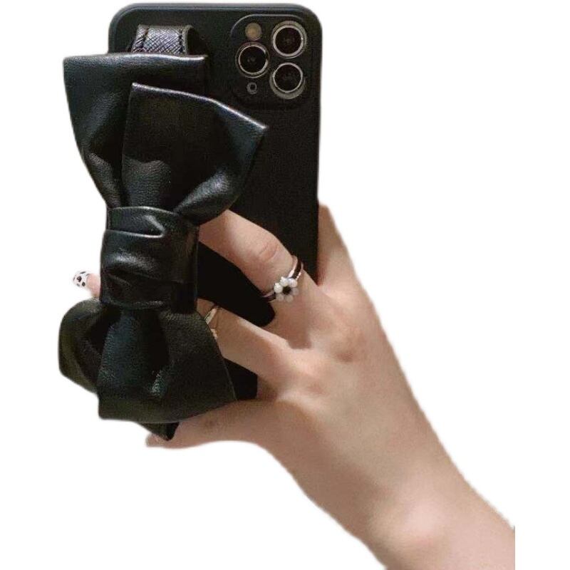 気質黒革の弓に適した携帯電話シェルxs最大落下防止シリコン78pソフトx ブラック リボン レザー iphoneケース かわいい MOMO38903895097