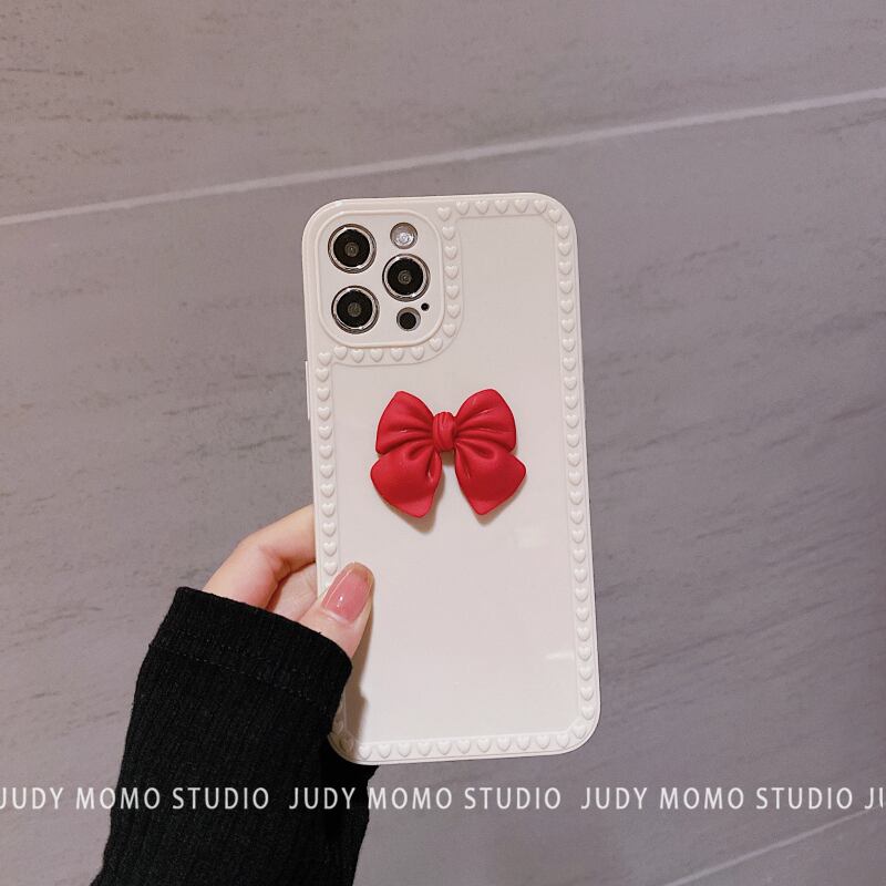 赤い弓で逃亡者iPhonexrApple 12promax携帯電話ケース11 / xs / 7ソフト8p レッド リボン iphoneケース かわいい MOMO42614242746