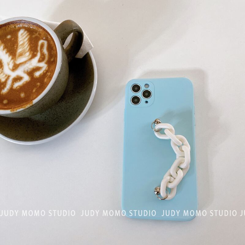 insシンプルなライトブルーの無地のシェルチェーンに適したiPhone11Apple 12promax携帯電話のシェルxr / xs / 8p ソリッドカラー NEW iphoneケース かわいい MOMO77889300952