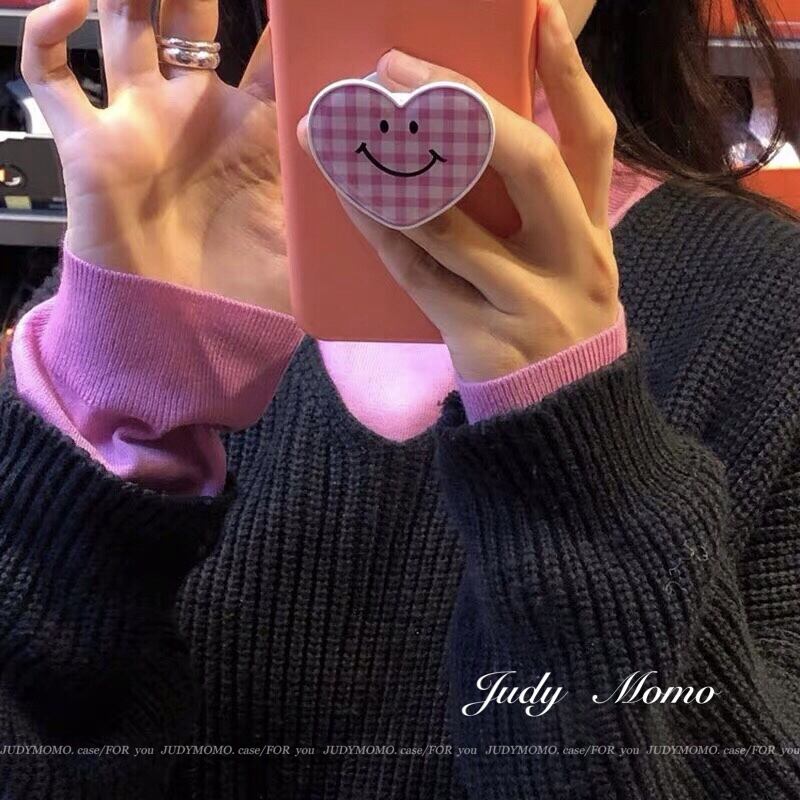 ins wind / loveピンクチェック柄スマイリーフェイスホルダー携帯ケースアップル11 / xsmax // iphone12 soft NEW かわいい MOMO3070858449
