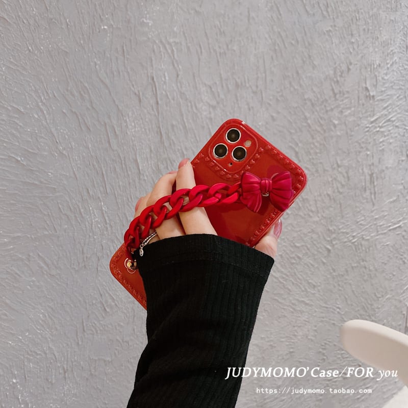 大きな赤いリボンチェーンが適していますiphone12アップル11promax携帯電話ケース8p / xr / xs / xアンチドロップ レッド iphoneケース かわいい MOMO35271005686