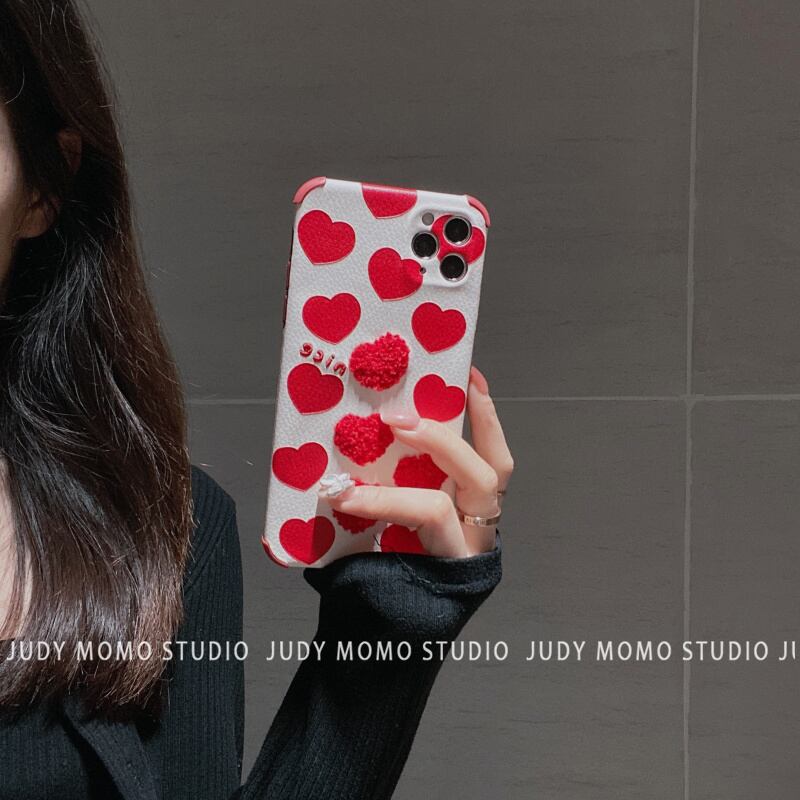 ガーリーレッドハートが適していますApple12promax携帯電話ケースiPhone11アンチドロップxr / xsソフト7 / 8pメス iphoneケース かわいい MOMO24917683142