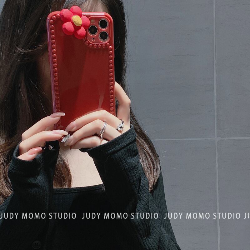 小さな赤い花が適していますiPhone11Apple 12promax携帯電話ケース8p年赤xr / xs / 7pソフトX レッド フラワーデザイン iphoneケース かわいい MOMO18511082076