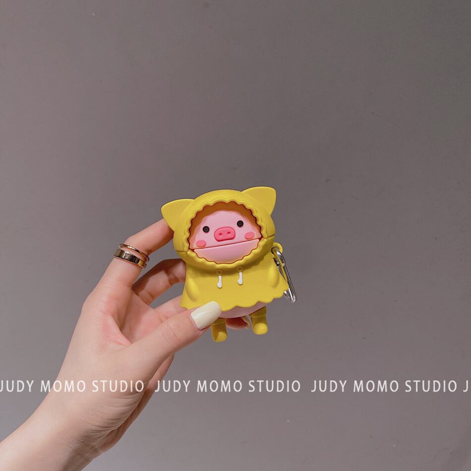 inswind三次元シリコンイエローレインコートピギー適切なエアポッドAppleBluetoothヘッドセットスリーブ落下防止保護スリーブ ブルー NEW かわいい MOMO49356233268