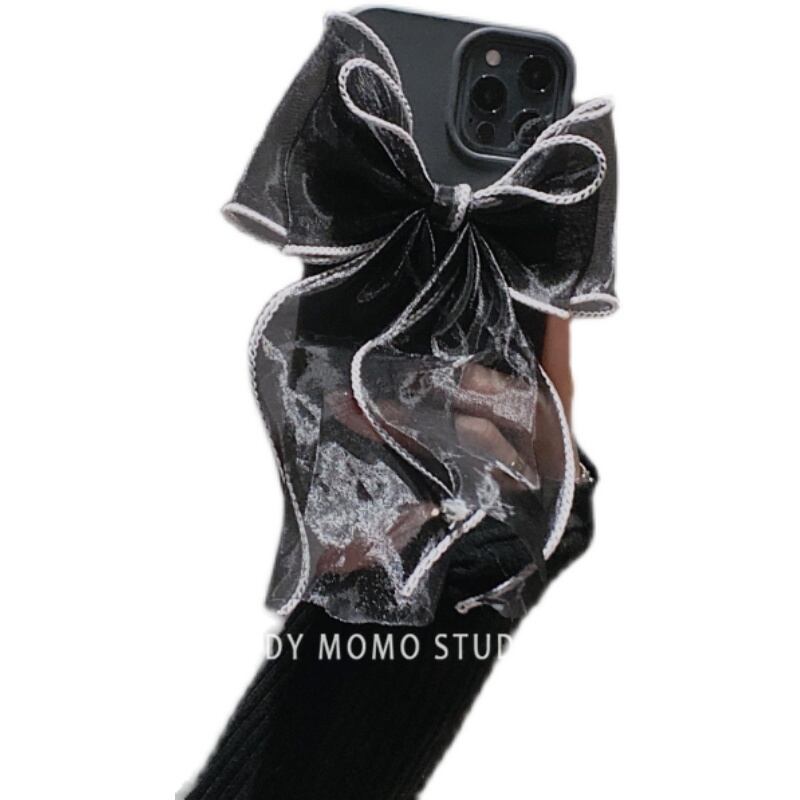 ダークヘップバーンスタイルのブラックシルクボウに適したiPhone11Apple 12promax携帯電話ケースxr / 7 / 8pソフト リボン iphoneケース かわいい MOMO13939016353