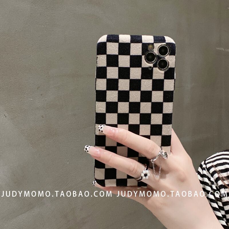 ins秋冬レトロチェッカーボードぬいぐるみiPhone12promaxApple xr / xs携帯電話ケース11pro7 オータム 秋物 ウィンター 冬物 NEW iphoneケース かわいい MOMO35288064621