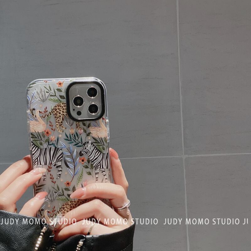 ヒョウとゼブラの花のイラストケースiPhone12Apple 11proMax携帯電話ケース8plus / xs / xr フラワーデザイン iphoneケース かわいい MOMO82342778886