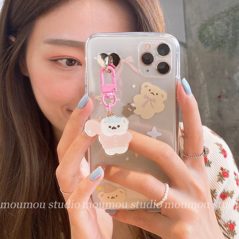 かわいいクマのペンダント携帯電話ケース12promaxシリコンスリーブ12mini 大人ガーリー スウィート キュート カジュアル かわいいA MOMO_A45010535062