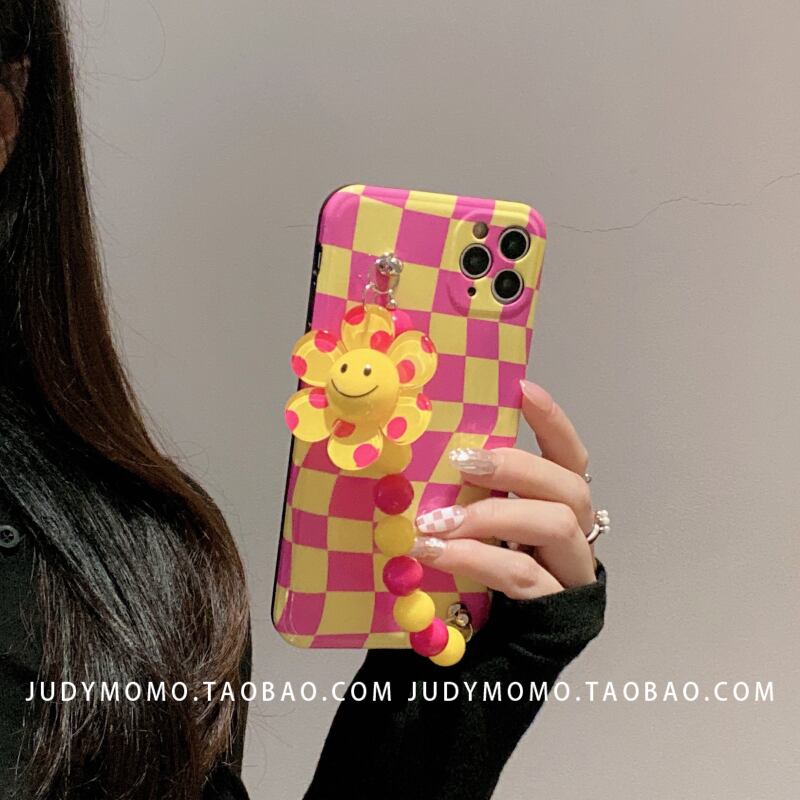 赤いチェッカーボードサンフラワーチェーンに適したiPhone12アップルXS携帯電話ケース11proマックスソフト8 レッド フラワーデザイン iphoneケース かわいい MOMO6660302394