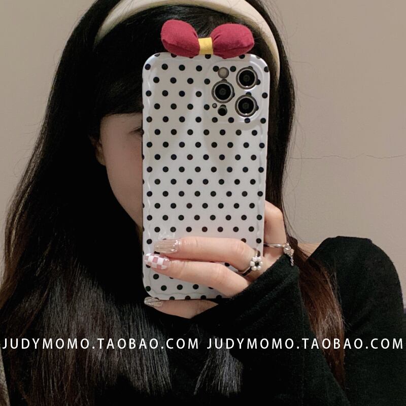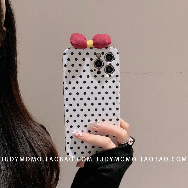ウェーブレットドットボウ立体的に適したiPhone12 / 11promax携帯電話ケースxs / xrアップル78p リボン iphoneケース かわいい MOMO40332154869