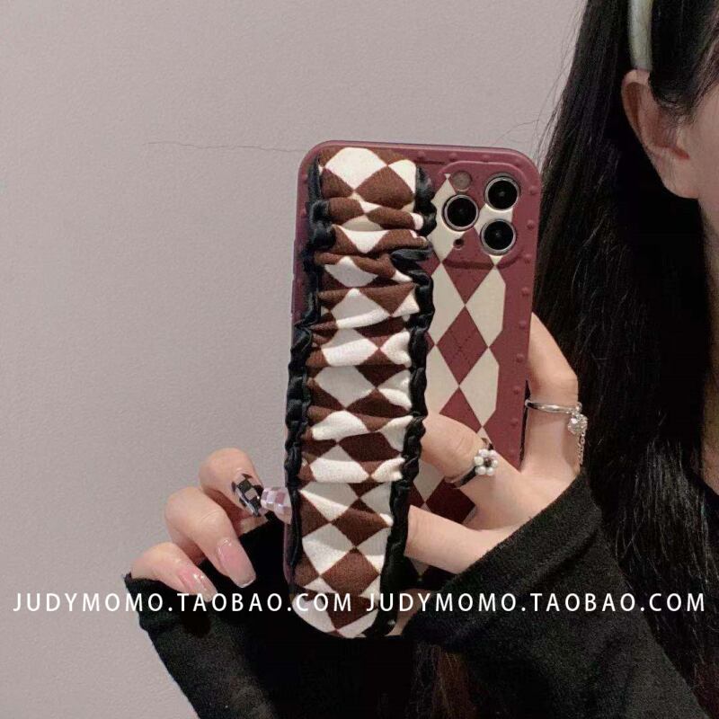 レトロなひし形の茶色のリストバンド携帯電話ケースiPhone11アップルXSマックスオールインクルーシブ12プロソフト78P女性 iphoneケース かわいい MOMO87380382316
