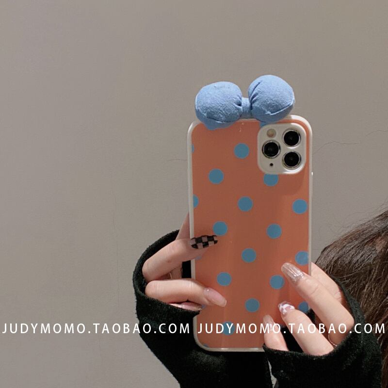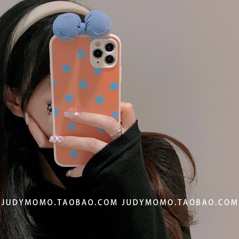 ガールウェーブドットオレンジボウに適したiPhone13promax Apple12携帯電話ケース11オールインクルーシブxr / 7pソフト リボン iphoneケース かわいい MOMO79145432663